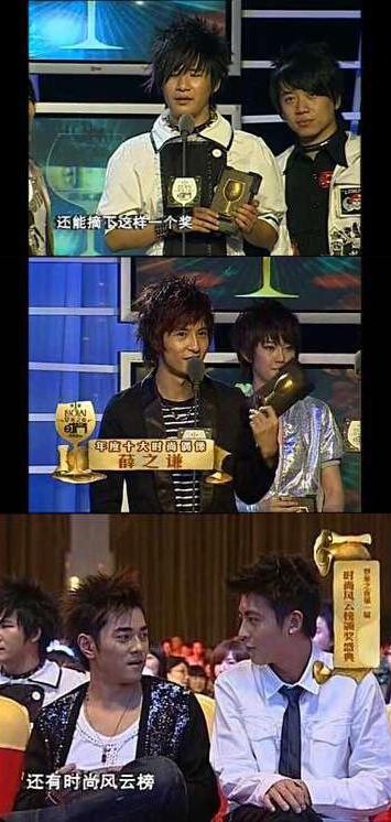 十多年前他来内地参加一个颁奖典礼,同期的歌手大张伟、薛之谦都是那个年代流行的杀马特风格,而他当时的造型和服装已经和其他人的杀马特风形成了鲜明的对比,搁现在看也不会觉得很傻。