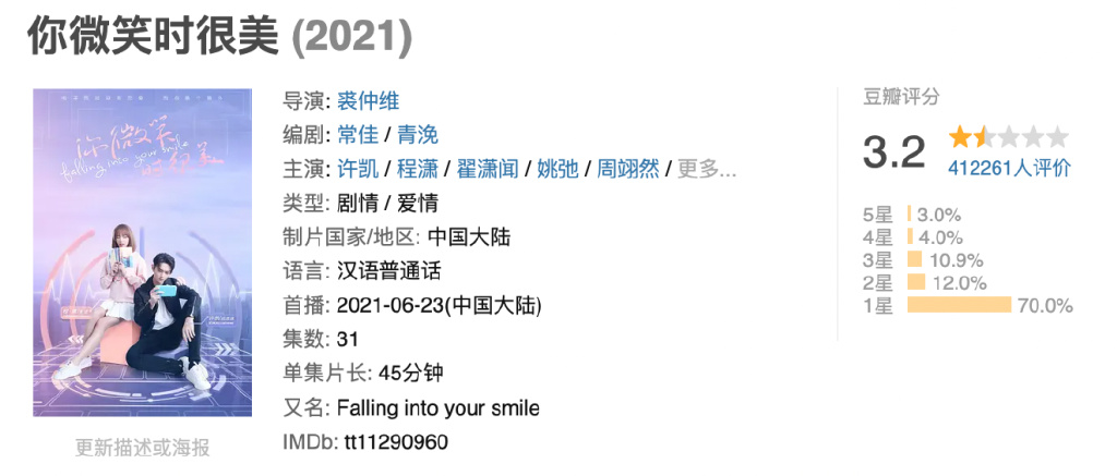 不可否认的是,电竞题材也并非弹无虚发,《良辰美景好时光》《你微笑时很美》等剧集就曾陷入口碑争议,评分分别只有5.7分和3.2分。