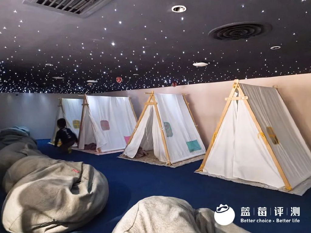 奈尔宝:一层半的星空区备有 20 多个儿童帐篷和懒人沙发,也有专门的低幼宝宝休息室,但是婴儿床只有 3 个,人多时基本靠拼手速;
