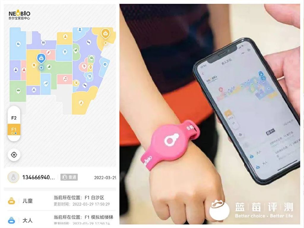 最得蓝莓酱欢心的,是奈尔宝的定位手环。入园后给娃戴上的智能手环,可以在微信登陆“奈尔宝”官方小程序后,实时定位孩子的方位,甚至能具体看到在哪层(北京奈尔宝共有 3 层),蓝莓酱第一次感受到了躺平遛娃的美妙。
