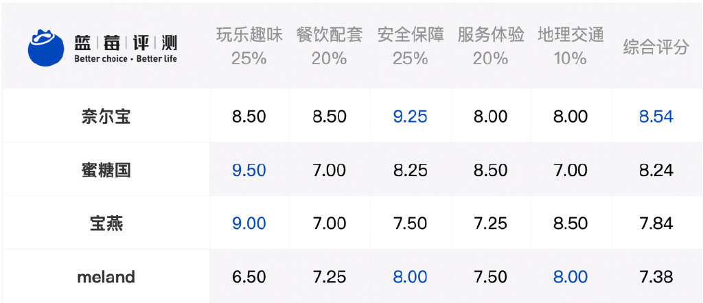 这五个维度着手,最终评选出了本次的冠军乐园: